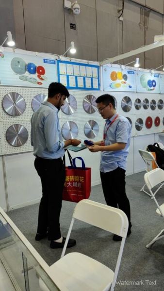 广晶公司经过精心准备,在本次展会上重点展出陶瓷专用锯片、岩板专用锯片、纳米微晶石专用锯片、马赛克组切专用锯片、腰线专用锯片,吸引了众多国内外客户驻足交流。有不少客户带来了在加工现场遇到的技术难题,经过与广晶公司高级工程师的技术交流,客户获得了满意的解决方案。