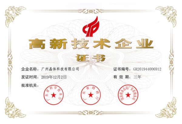 近日,广州z6com·尊龙凯时人生就是搏!官网科技有限公司收到了由广东省科学技术厅、广东省财政厅、国家税务总局广东省税务局联合颁发的“国家高新技术企业”证书,这是广晶公司继2016年获得该项证书之后再次成功加入国家高新技术企业行列。