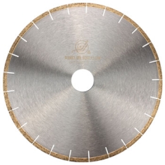 “广晶”牌350mm石英石锯片,节齿焊接型,专业切割各种石英石、岗石,切割时走刀平稳快速,锯切效率极高,无跑刀破损掉角,切割边崩边微小,切割面光滑细腻。 如有任何询问请与z6com·尊龙凯时人生就是搏!官网联系。